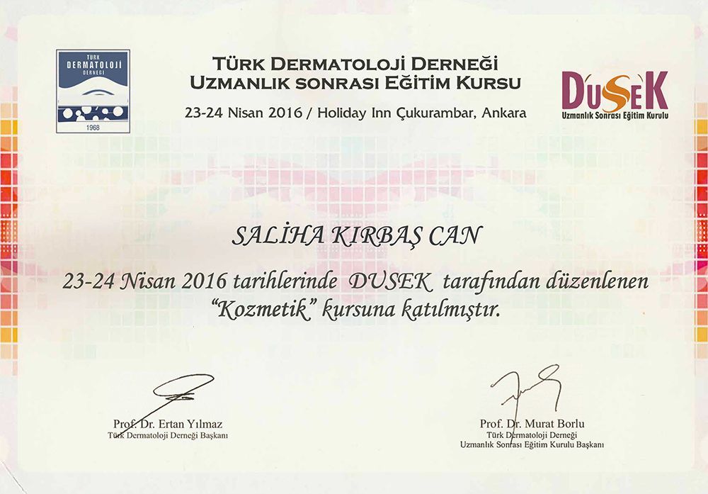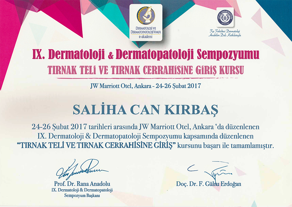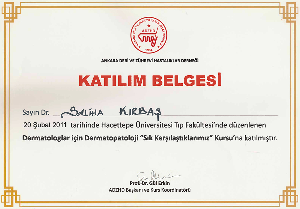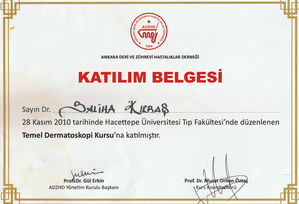 Ankara Dermatology and Venereal Diseases Association Certificate of Participation 2